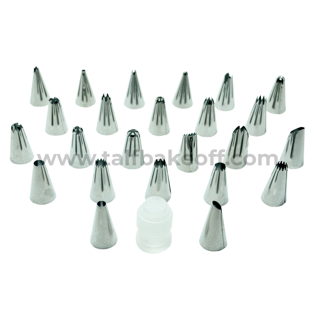 - This 24 piece Cake Decorating Icing Nozzle Tips set offers you a various choice of designs when it comes to icing cakes and pastries.