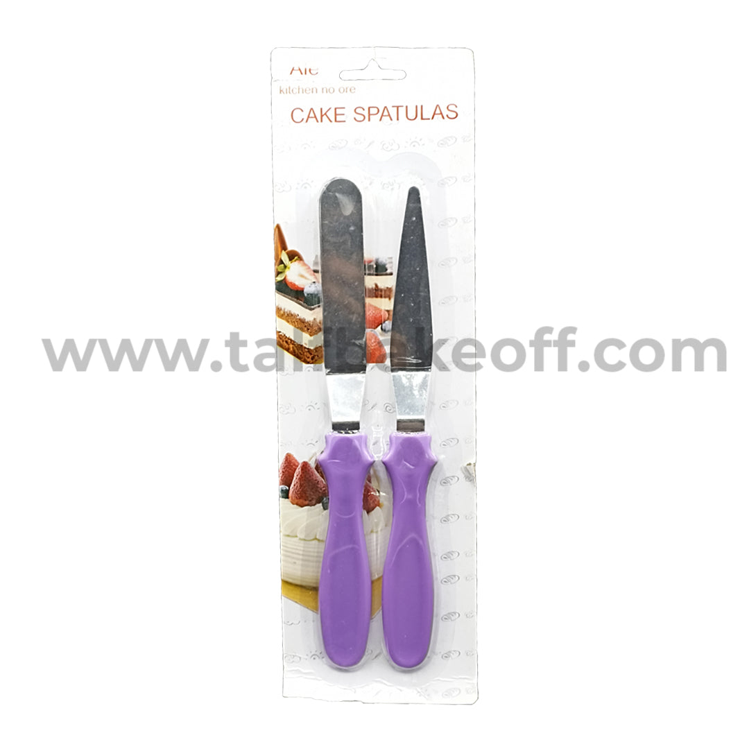 2 Pieces Small Cake Spatula Set - includes Straight Cream Scraper, Angled Icing Spatula, and Tapered Stainless Steel Spatula. Note - Colors would depend on availability.