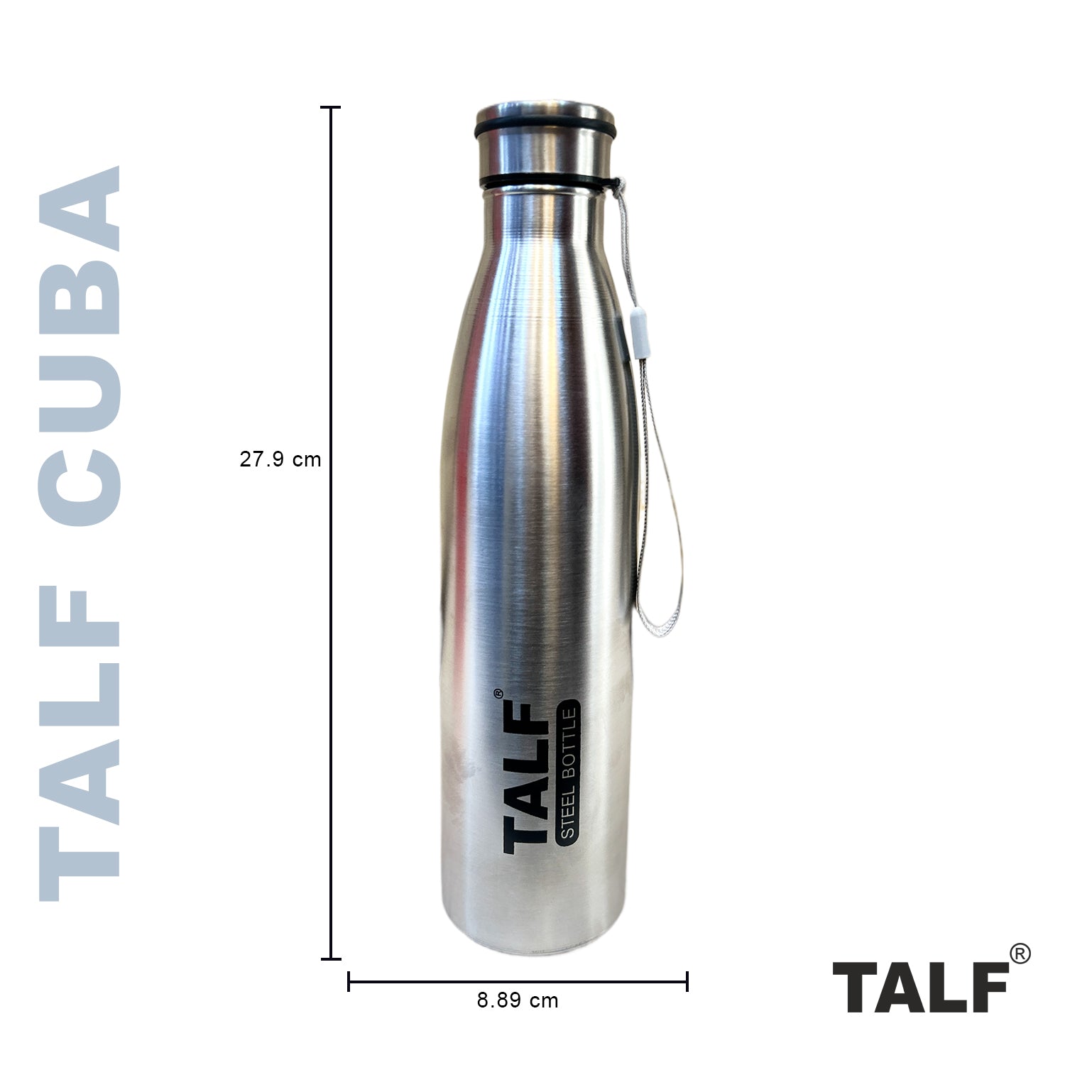 TALF CUBA Stainless Steel Water Bottle, 1000ml, Single Wall, Leakproof, fridge water bottle